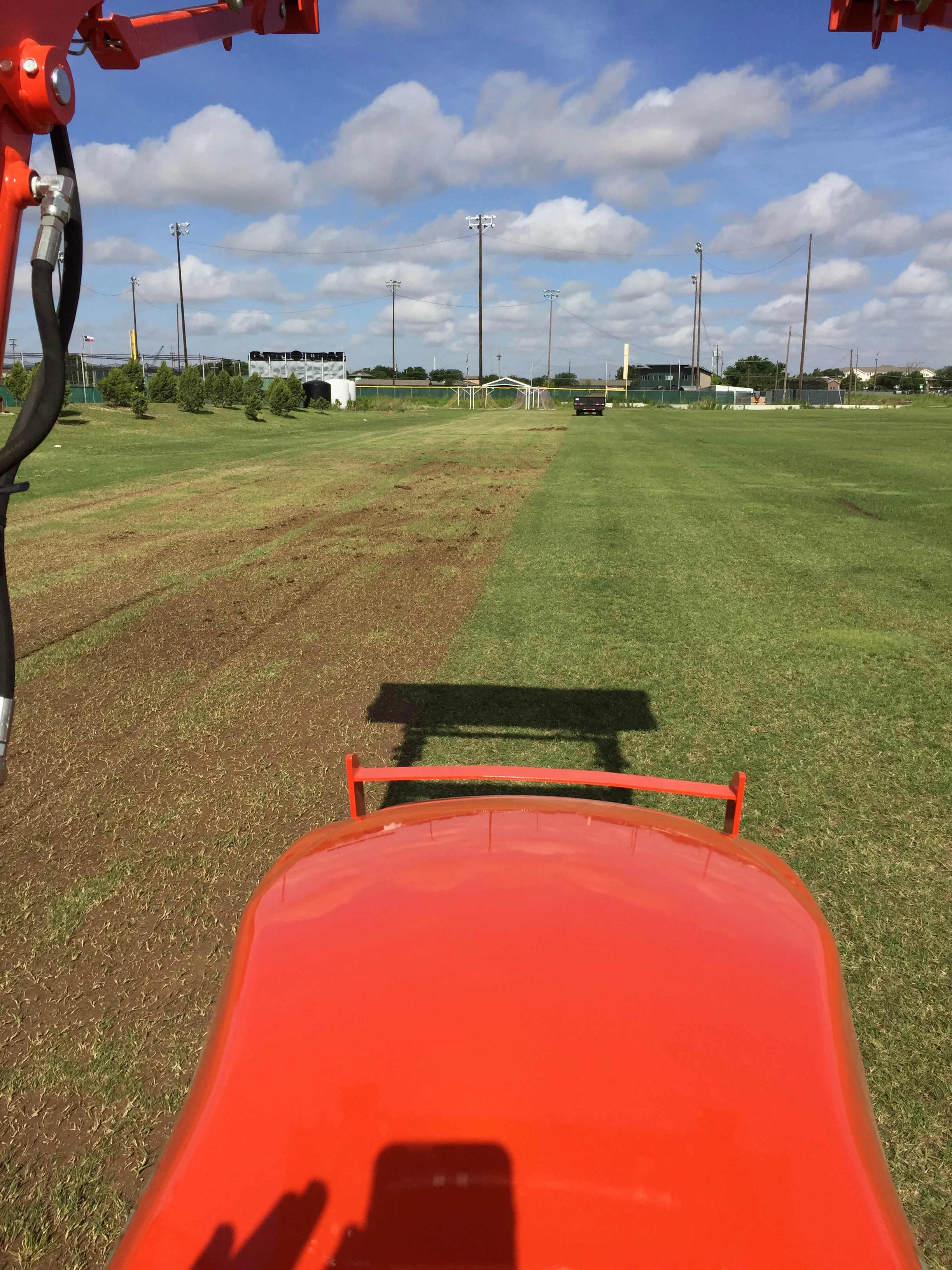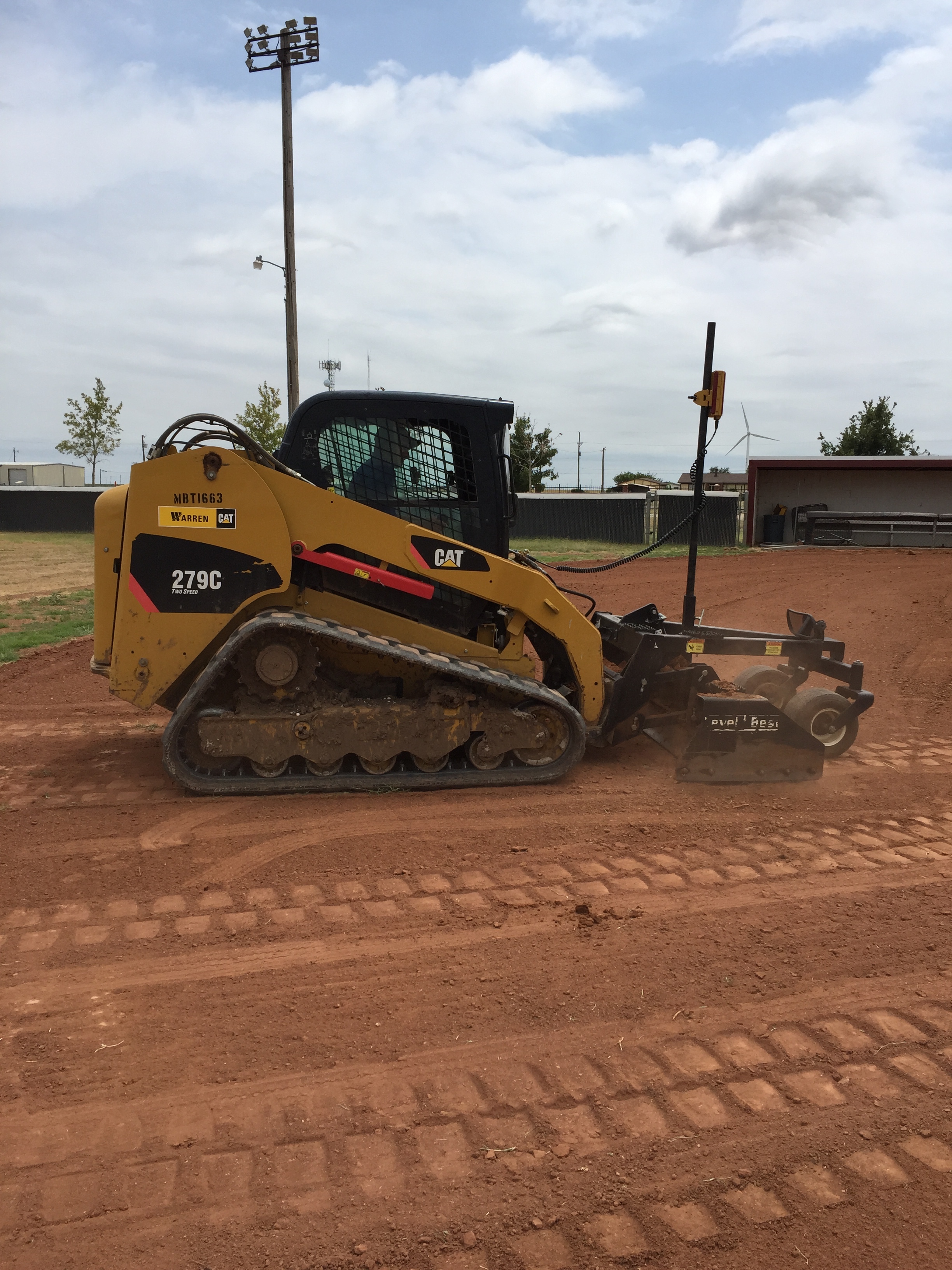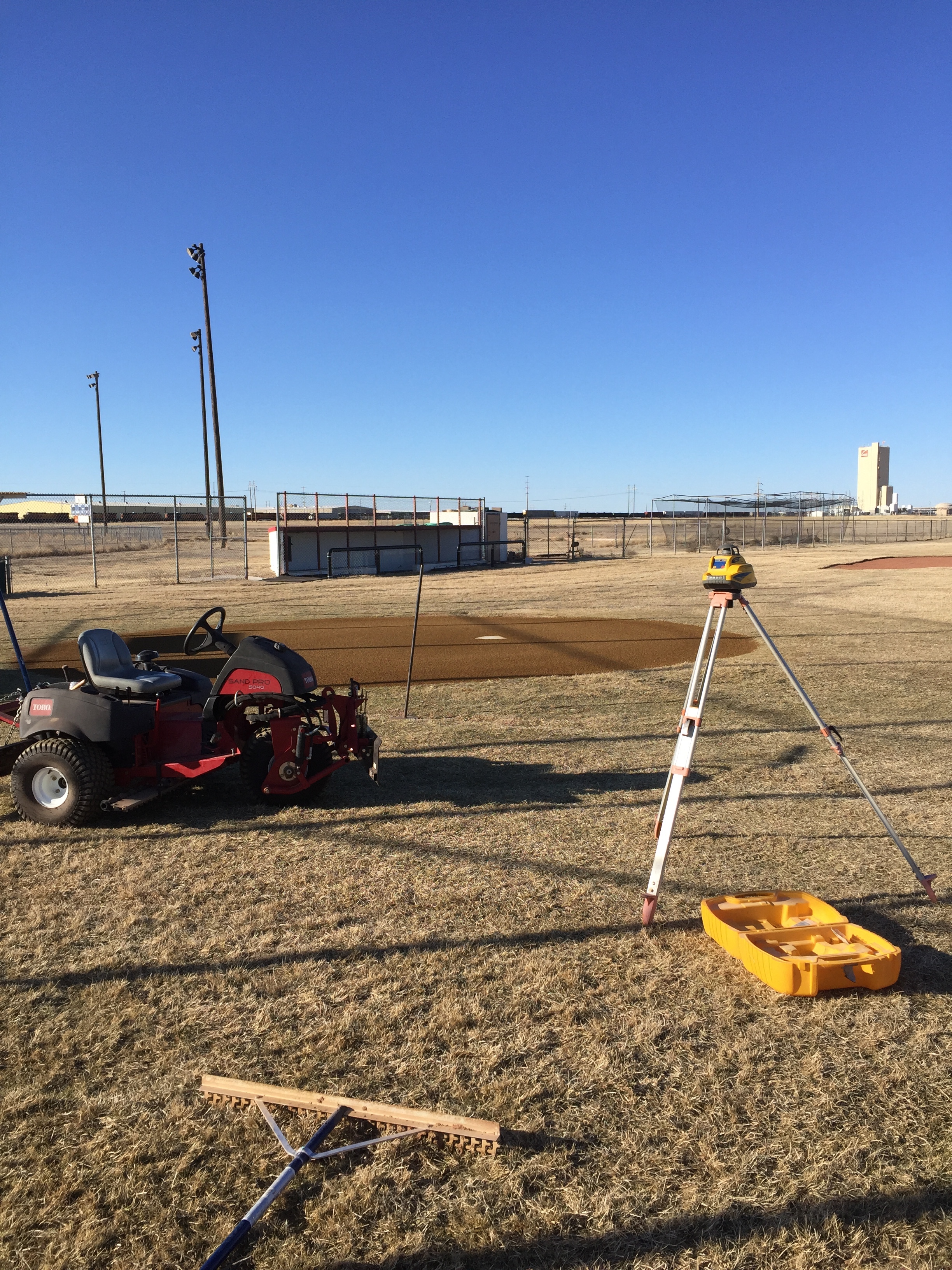 Finishing the laser subgrade for a softball field reconstruction project.