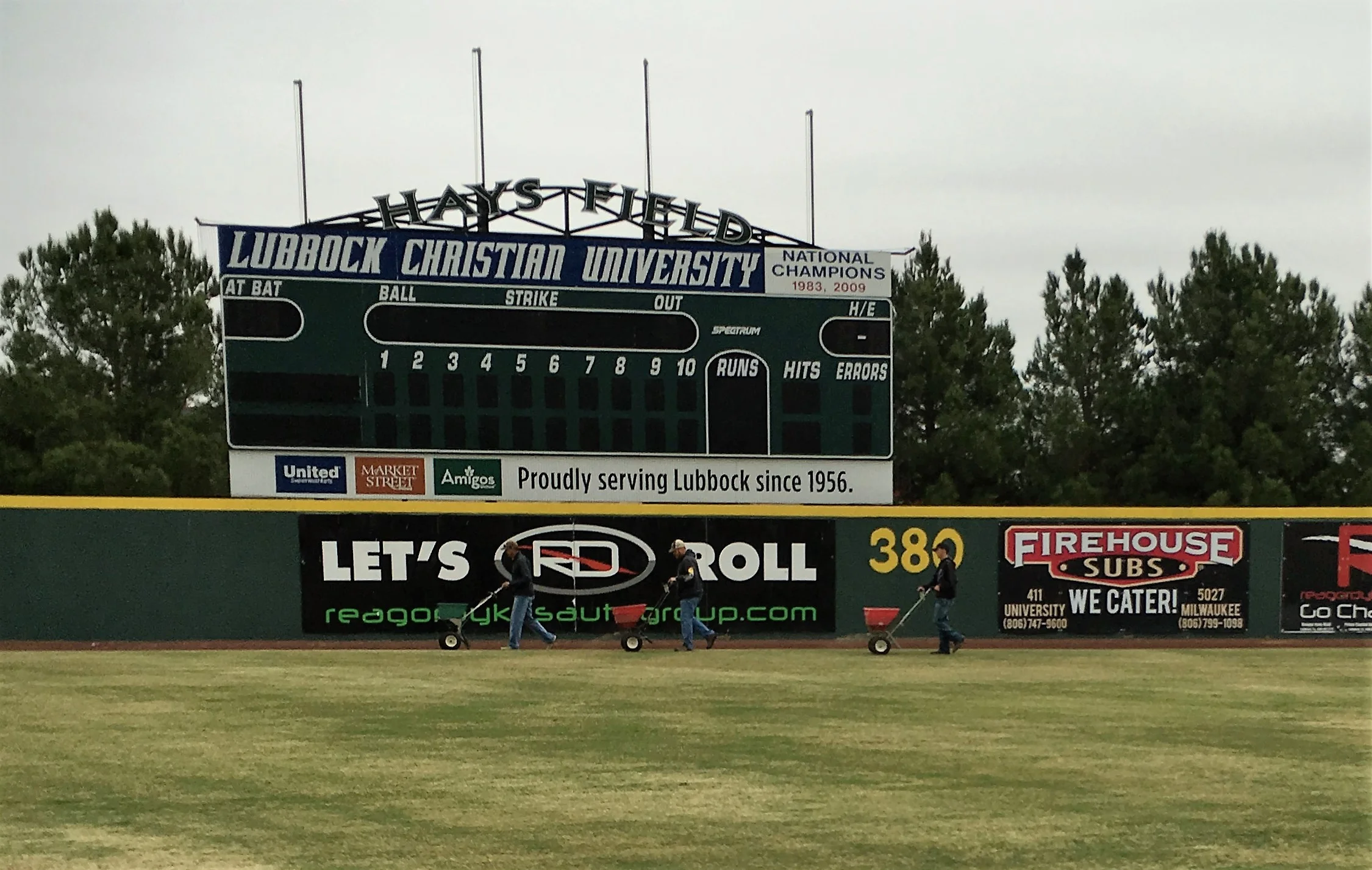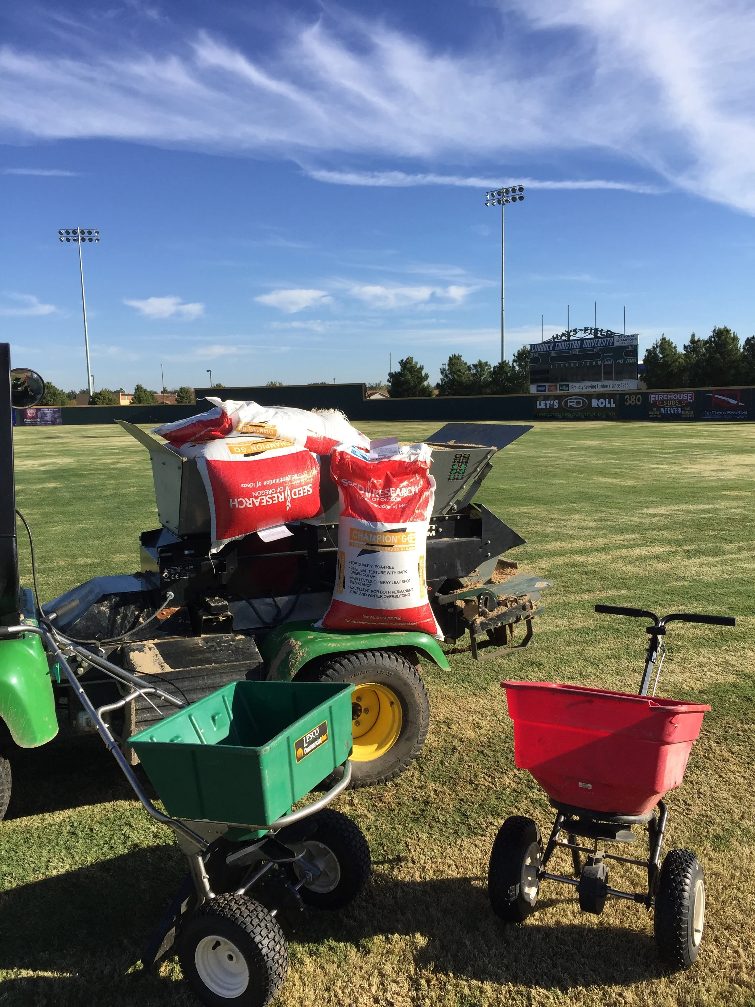 The crew edging the fields with Champion GQ. All of our seeding begins with careful drop spreader applications. We want that clean crisp edge of new germination.