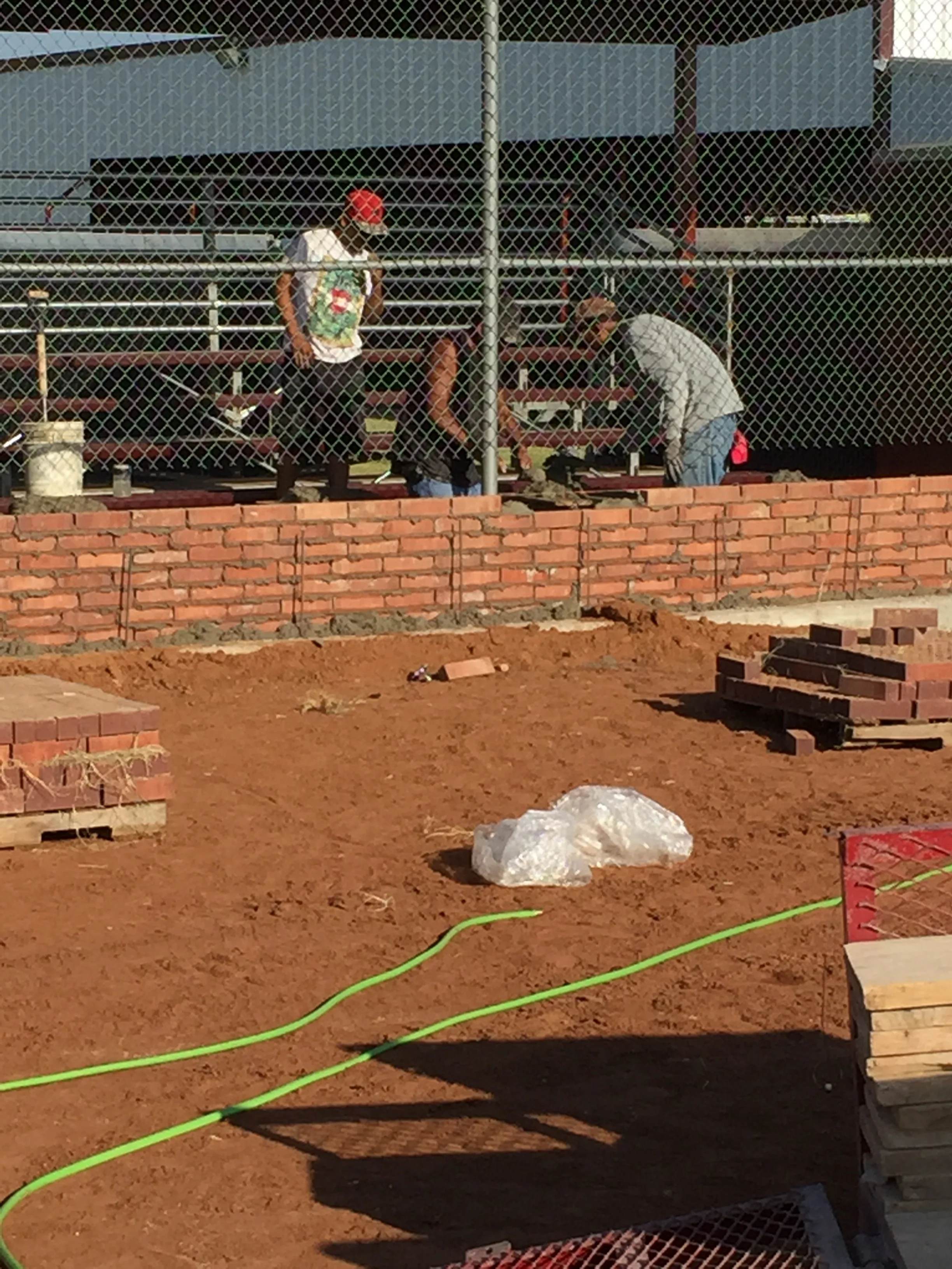 New backstop wall being constructed.